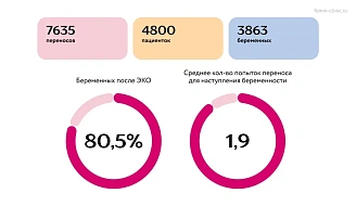 Главная цифра нашего исследования и наша самая счастливая статистика звучит так: 80% наших пациенток беременеют при помощи ВРТ. В среднем для этого нужны две попытки переноса (1,93).
