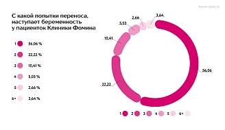 Главная цифра нашего исследования и наша самая счастливая статистика звучит так: 80% наших пациенток беременеют при помощи ВРТ. В среднем для этого нужны две попытки переноса (1,93).